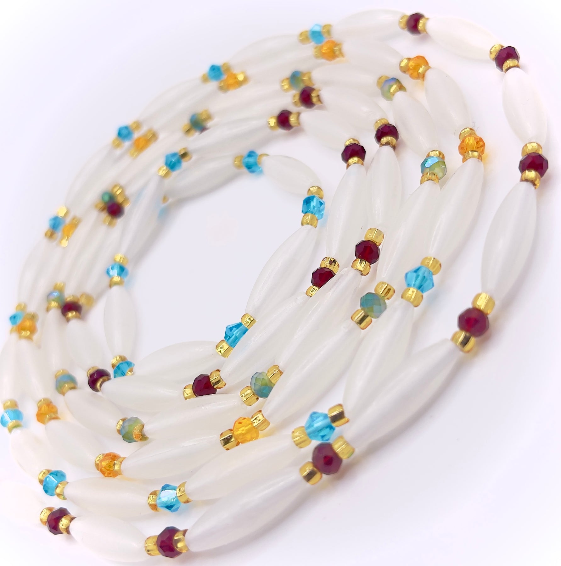 - This listing is for one (1) single TIE-ON waist bead strand. It will go around the waist once.