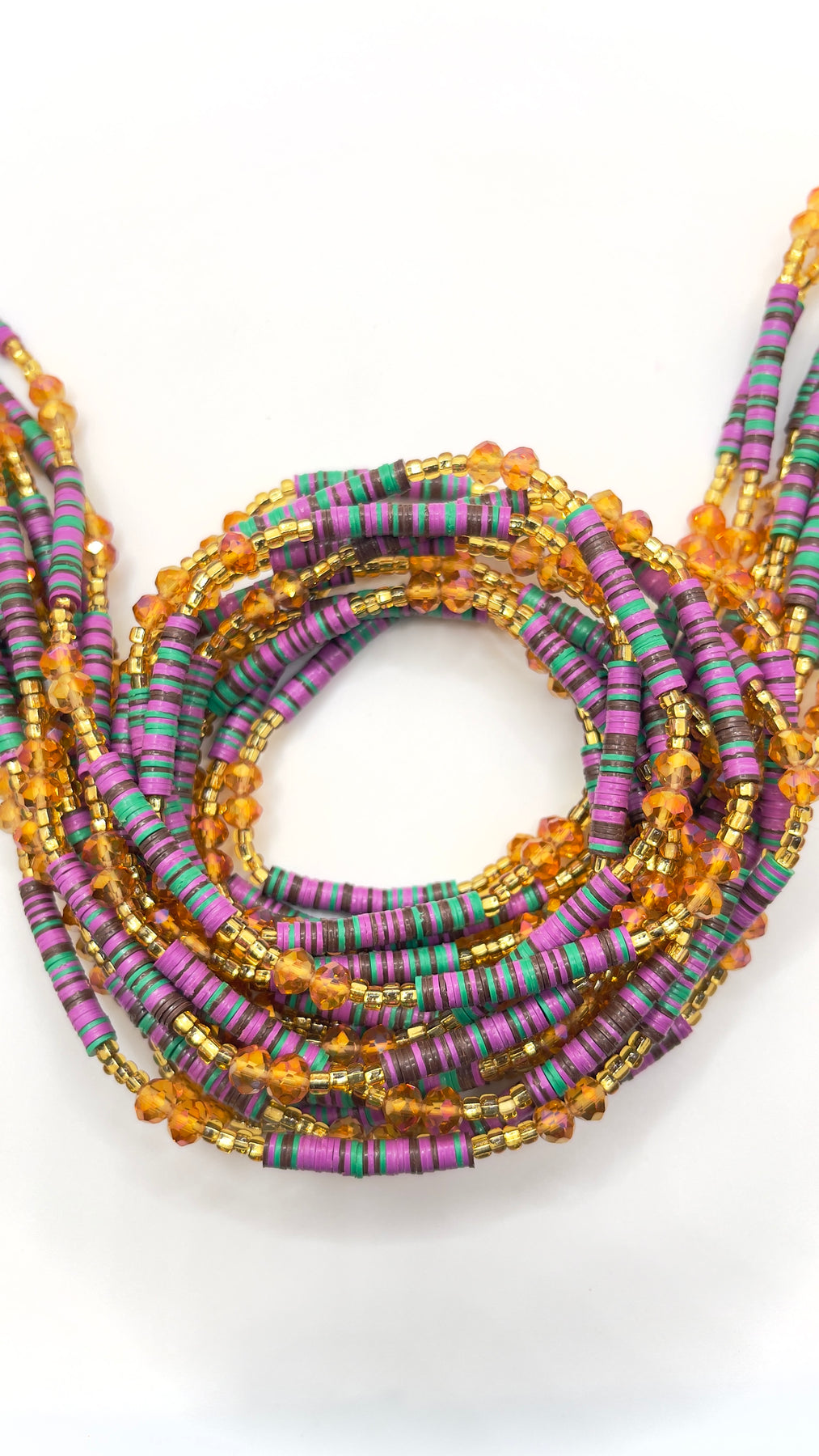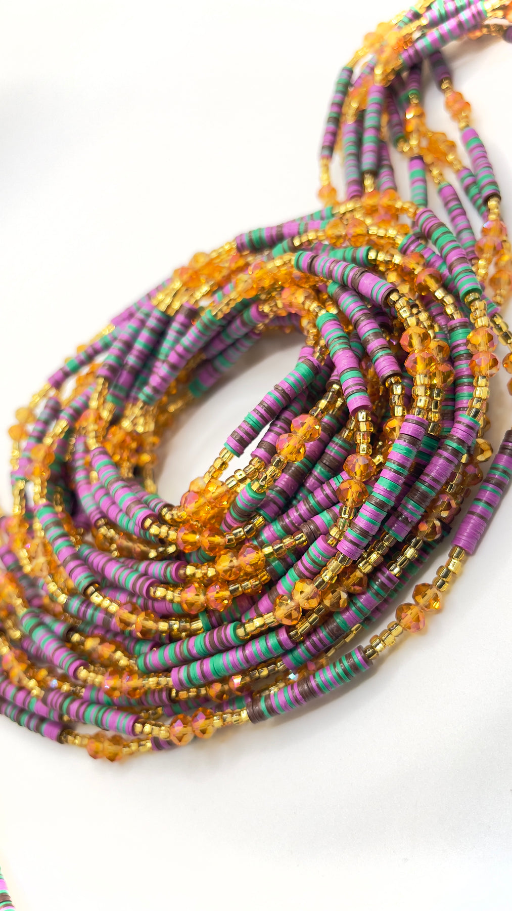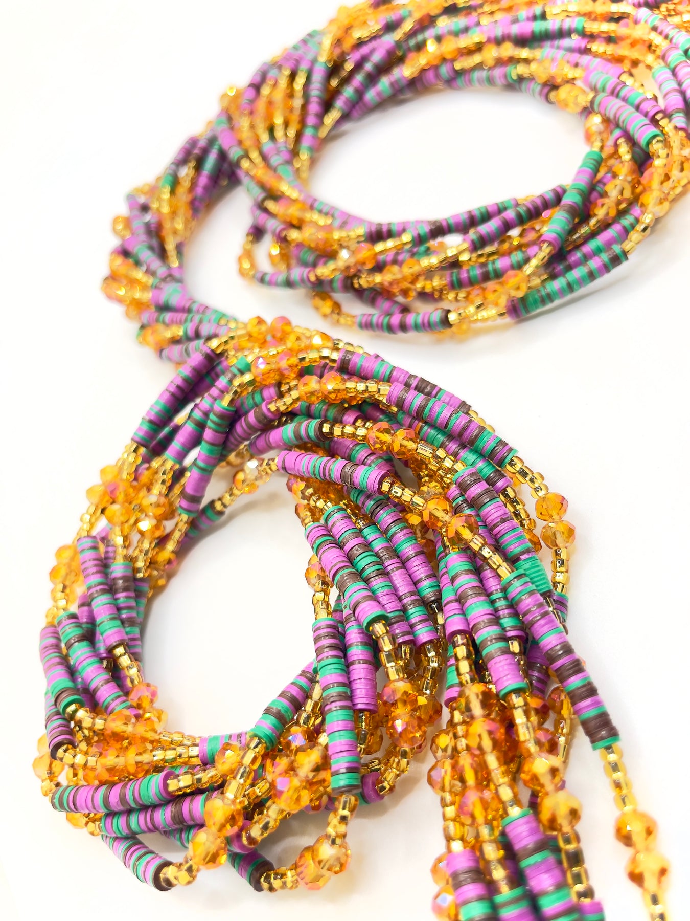 • This listing is for one (1) single TIE-ON waist bead strand. It will go around the waist once.