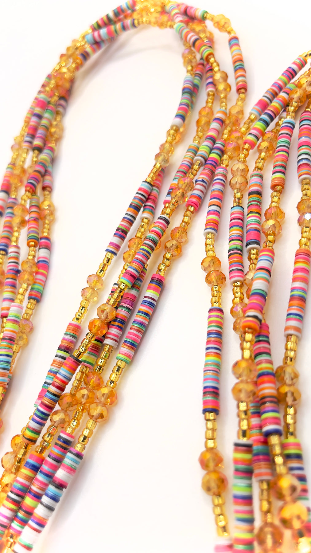 TIE ON WAIST BEADS WILL NEED TO BE ADJUSTED DOWN TO YOUR WAIST SIZE.
